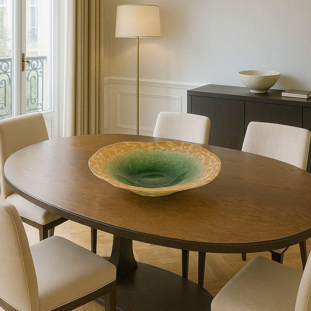 Artículo de decoración centro de mesa diseñado para aportar estética moderna al hogar. Ideal para sala, comedor u oficina. Su tamaño aprox. 36x36x7.5cm lo hace perfecto para combinar en superficies como mesas y repisas.